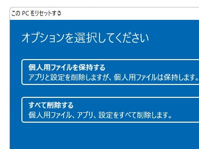 Windows 8.1や初期のWindows 10では、メーカーが初期化方法を提供してなければ初期化は不可能でした。しかし、最近のWindows 11/10にはWindowsだけ残して初期化する機能が付いています。(メーカー製パソコンのプリインストールソフトなどは消されてしまいます)
